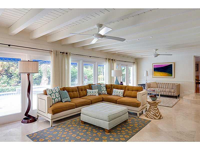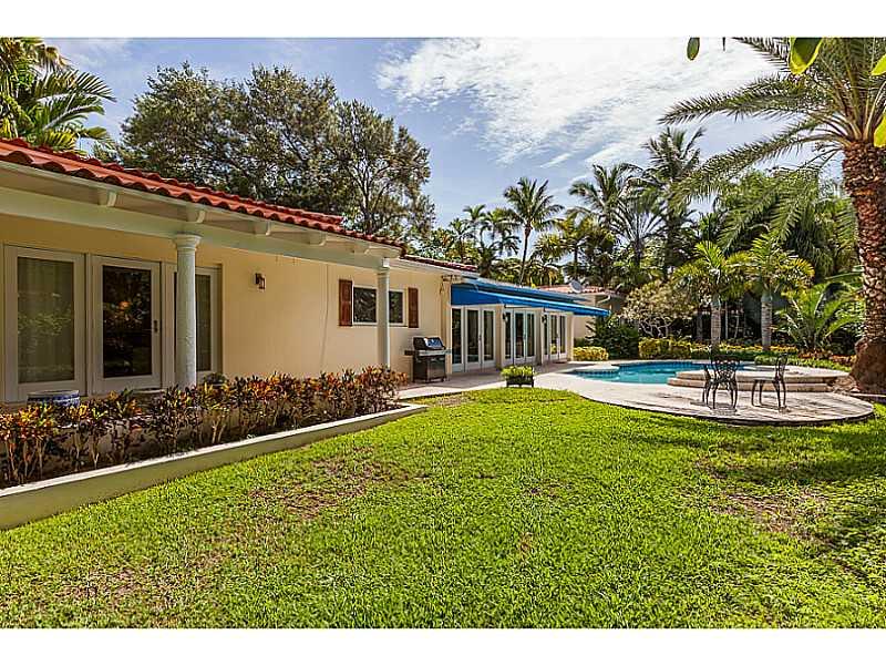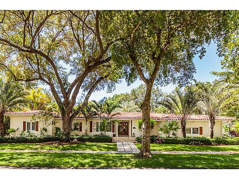 This wonderful family home in Coral Gables coveted Platinum Triangle graces a 16,000 + lot. Recently updated and expanded with 5 spacious bedrooms with ensuite baths and large walk in closets, two family rooms, formal living, dining rooms and library with hardwood floors and saturnia marble. A relaxed elegant home with impact windows & French doors that look onto the inviting pool, lush landscaping and covered terraces.