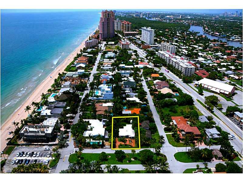 Perfect beach house in Fort Lauderdale's premier beach neighborhood! Stand in front of the house and see, smell and hear the ocean! This 3 bedroom / 2 bath home was built on one of the larger lots in the neighborhood. Split bedrooms, tile floors throughou t, plantation shutters, wood burning fireplace, French doors open to back patio and lushly landscaped fenced backyard. Lot totals 9000+sq ft, 72' x 125'. Side yard ideal for boat storage.