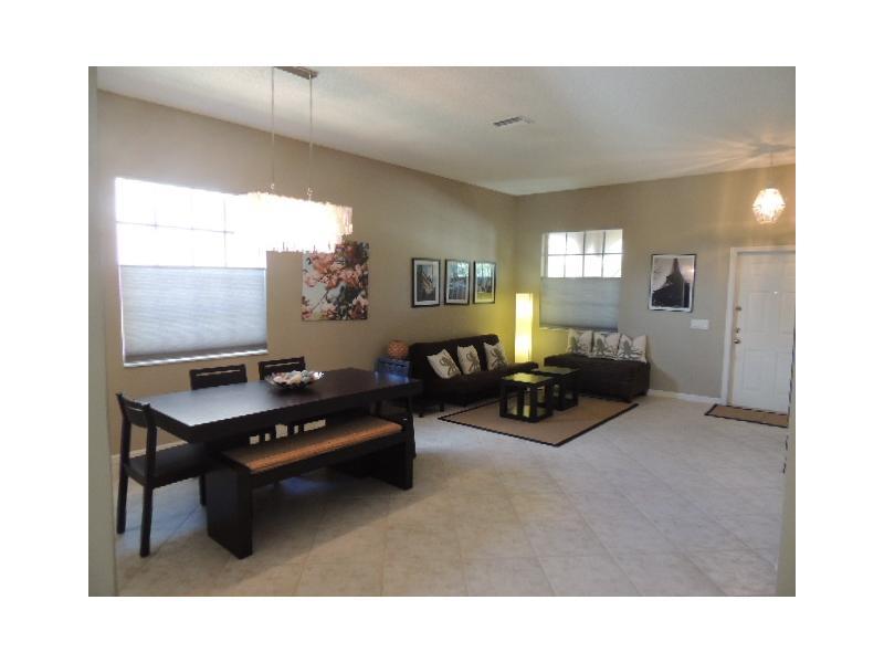 ENJOY LAKE VIEW WITHOUT PAYING FOR IT. THIS THOUGHT OUT CLOVER MODEL IS PERFECT FOR A FAMILY. IT HAS EVERYTHING YOU ARE LOOKING FOR 4BD,2.5B,LIVING & DINING ROOM & A LGE FAMILY ROOM. LGE KITCHEN W/ SS APPLIANCES & A BREAKFAST ISLAND W/ LOTS OF DRAWERS & Q UARTZ COUNTER TOP. 4 BD HAVE BRAZILIAN WOOD FLRS & INDOOR LAUNDRY W/ NEW WASHER & DRYER. LARGE PRIVATE FENCED BACK YARD W/ AN EXTENDED SCREENED COVERED PATIO & A LATERAL VIEW OF THE LAKE. THE FRONT OF THE HOUSE BOASTS A FULL FRONT PORCH. CLOSE TO POOLS.