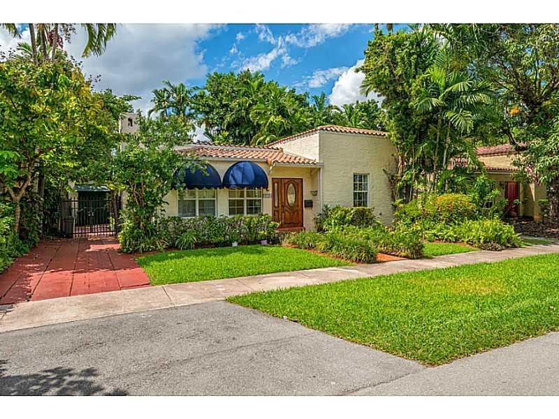 Beautiful Old Spanish home in Coral Gables. This upgraded, well maintained 2 bed/1 bath home boasts hurricane impact windows/doors, gorgeous original wood floors, fireplace, new bathroom & kitchen appls. The home welcomes you through a tiled foyer w/Fren ch doors & lots of windows making it very bright, high ceilings make it feel spacious. Enjoy the tranquil garden from the covered/screened "outdoor living area" with a 2cnd full bath. Covered garage can be converted to 3rd bed. This home is a must see!