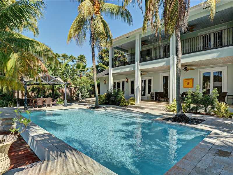 STUNNING AND PROFESSIONALLY DECORATED 5 bedroom + library (6 bedroom)/ 4 full en suite bathrooms and 2 powder rooms, remodeled waterfront Key West style home in Rio Vista Isles. This home offers all of the elegance in lifestyle: pool directly on the can al, terrace off of the master bedroom, dual temp control wine cooler, maids quarters, wood flooring, mother of pearl dining room ceiling, granite counter tops, stainless steel appliances and much more.