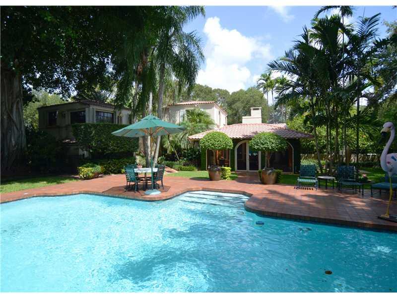 Elegant, 1920's historic Old Spanish villa with resort like 20'X40'pool, patio & grounds on gorgeously landscaped 16,000 sq.ft. lot in the prized Golden Triangle neighborhood. Main house has 3 bedrooms/2 baths. Large guest house atop 2 car garage has grea t room, kitchen & bath. Maid's room & bath. Dramatic formal living room has cathedral beamed ceiling & massive fireplace. Formal dining room. Large eat-in kitchen opens to charming courtyard. Fabulous 22'x23' screened party room. 2 car garage. Generator