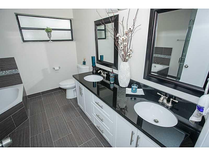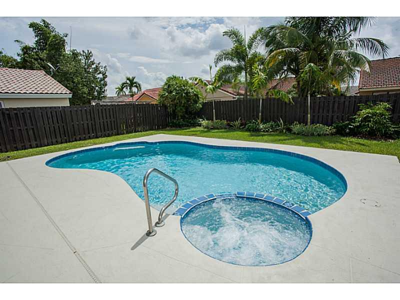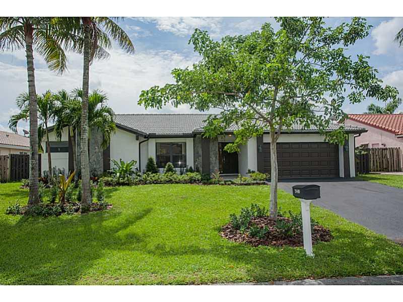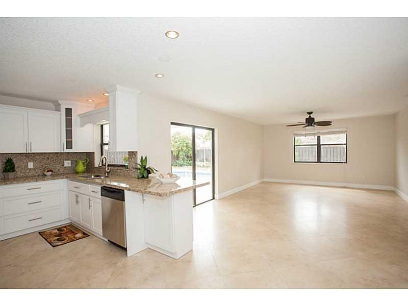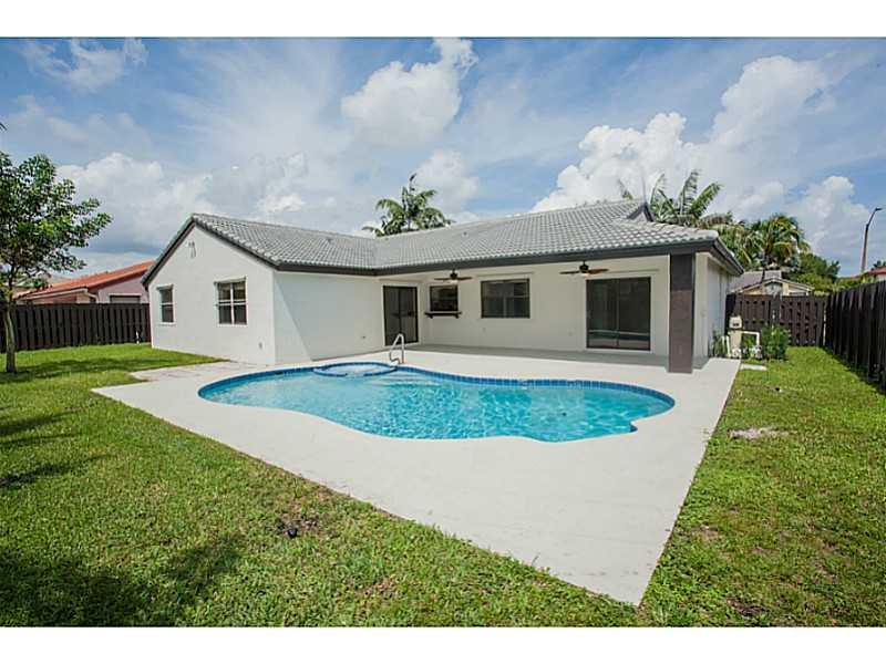 Beautiful & completely redone 3/2 home. Brand new kitchen w/SS appliances, granite counters & new fans. High quality tile flooring in living areas & laminate wood floors in bedrooms along w/large walk in closets. Master bath has absolute black granite cou nter w/dual vanities, large bathtub,& glass enclosed shower. All brand new appliances including washer & dryer. Pool w/jacuzzi, massage jets & new pool pump. Large backyard w/covered terrace in rear w/paddle fans. Walking distance to schools & restaurants