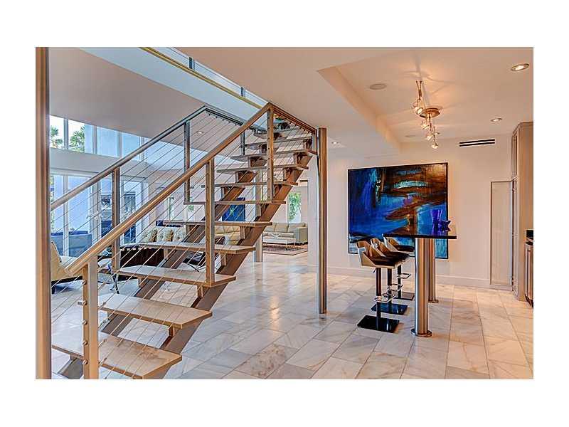 Epic contemporary masterpiece offers uninterrupted bay views w 80+ ft of water and private dock w 2 boat lifts. Modern design features custom stainless steel staircase, Spanish marble floors and soaring floor-to-ceiling impact glass which blends flawlessl y w ext infinity pool and summer kitchen. The "Bayview house" was completely remodled in 2008 w energy efficiency in mind, has 6BRs, 5.5BA, security cameras, generator, 3-car garage, & over 5100sqft of liv. area. Miami lifestyle with understated elegance!