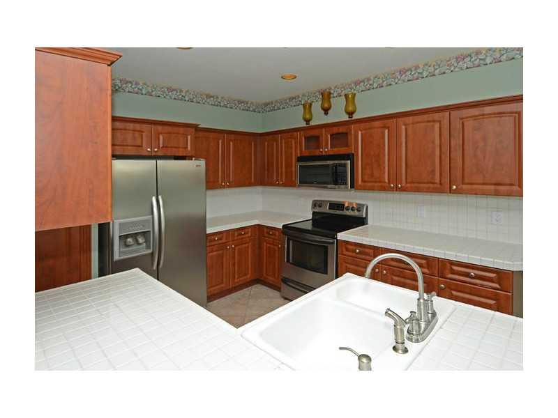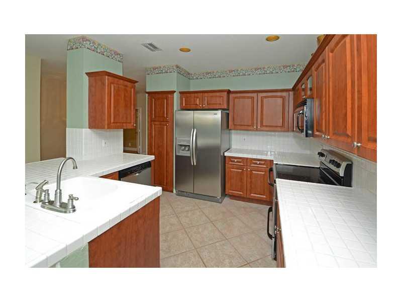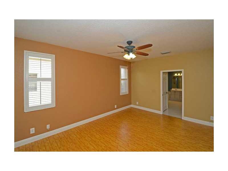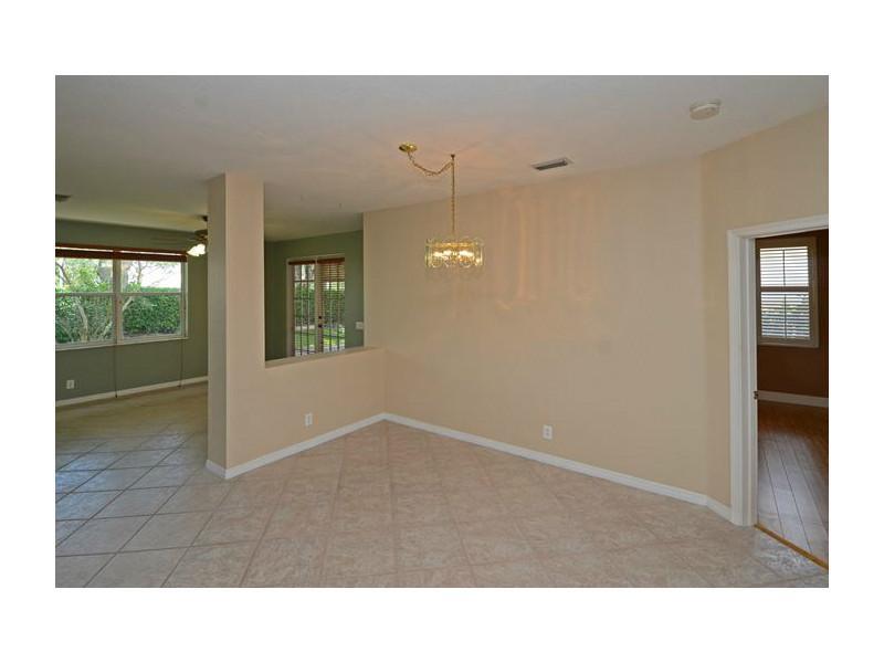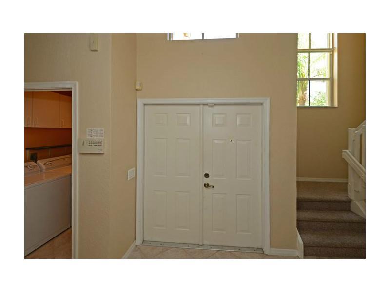 5BR/3.5BA Darby Five model with the Master Bedroom Suite downstairs. Kitchen boasts wood cabinetry, stainless steel appliances and tiled counter tops. Property is situated on a bermed lot with no neighbors behind. Screened and covered patio, accordion shu tters on all the windows. Ceramic tile flooring in the social areas and carpeting up the stairs and bedrooms. Just a short walk to the community recreational area and within walking distance to Eagle Pointe Elementary School.
