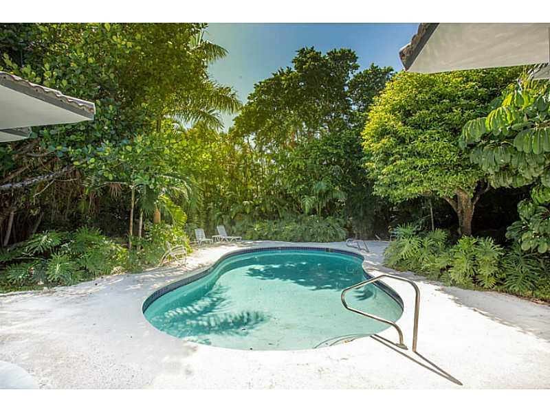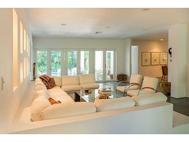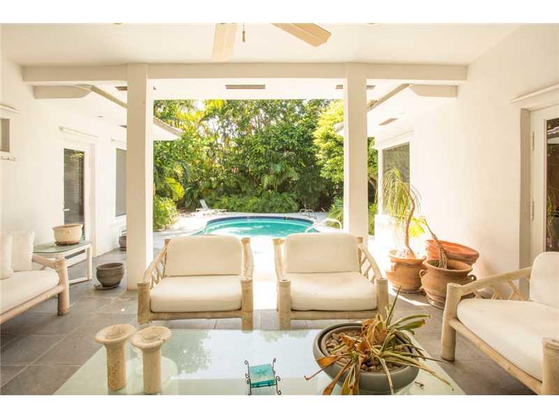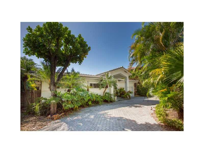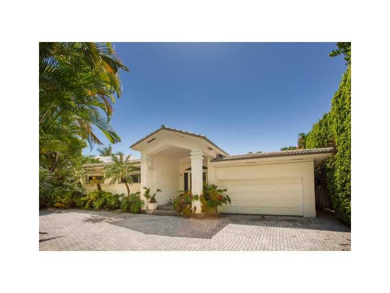 Live in the Billionaire's playground in this stylish Mimo chic 1 story classic. Completely private pool/garden area with covered terrace. Perfect for grand entertaining w/ high ceilings in great room. 2 car garage. Across the street from beach & ocean. Ex cellent home to display art & your collectables. Easy to show! Stand up basement under home for extra storage.