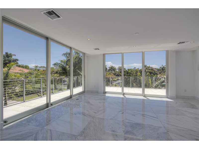 Gated exclusive Hibiscus Island, Miami Beach. Brand new ultra-modern design luxury home w/ top of the line finishes & pool with limestone flooring. Completed May 2015; Foyer entrance has dramatic 26 ft. ceiling. 11 ft. ceiling throughout home. Wall to wal l 36"x 36" Italian Carrara marble floors, 4 beds/4 baths upstairs with water views from terraces & custom walk in closets, 1100 sq.ft. lighted roof top terrace & incredible panoramic views. 1 bed/1.5 baths downstairs. Fabulous indoor reflective pool.