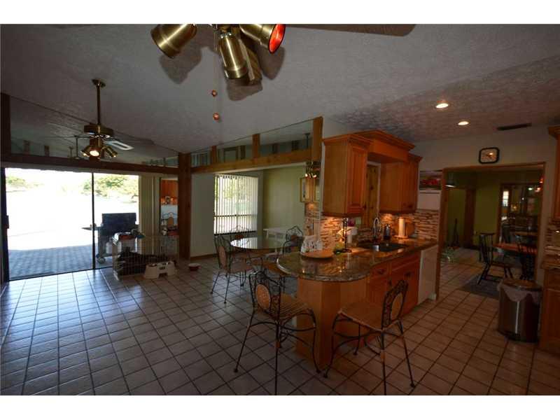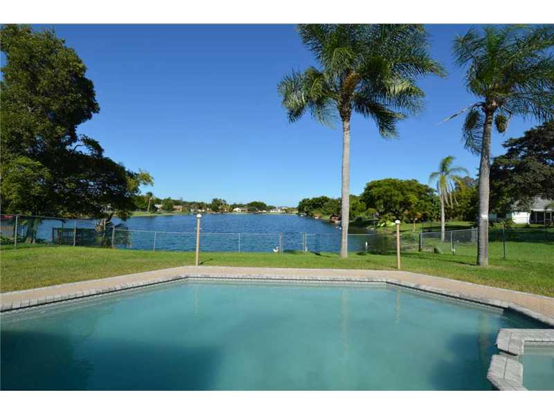 3 Bed 2 Bath W I D E Lakefront/Pool home in the HEART of Davie! Circular Drive, Roofed/Screened Front Porch-House Roof=2002, Fenced Yard! ACCORD SHUTT-Heated Pool! HUGE Paver Patio w/Electric Awning! Newly remodeled Kitchen with Granite Counters and Tile Backsplash! Fabulous Custom Designed Cabinetry w/Fluted Crown and Base! Matching BONUS Granite/Cabinet Filled Buffet! Under Cabinet Lighting! Mirrored Walls in Dining Room! and Entertainment Area-Wood Floors in Master and Bed #2-Carpeted 3rd Bedroom-