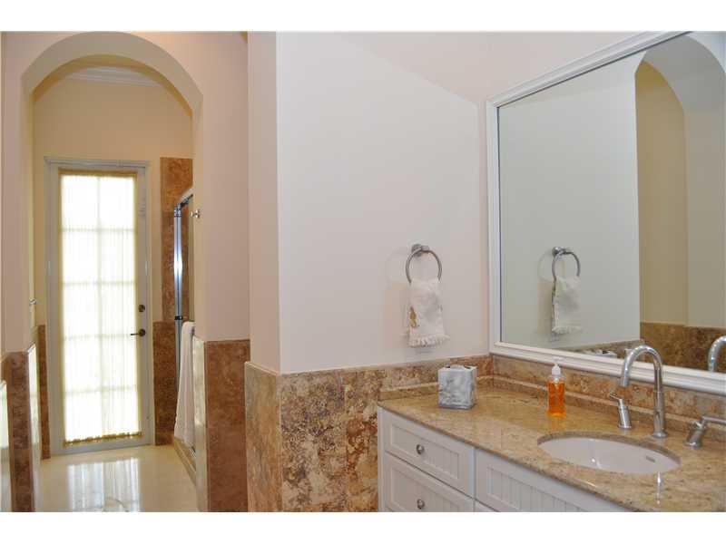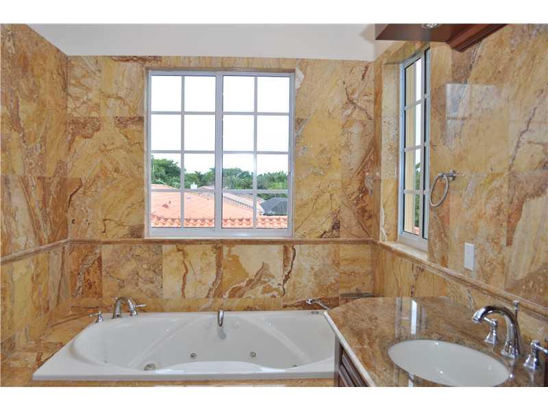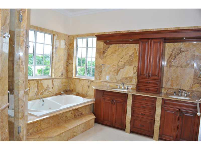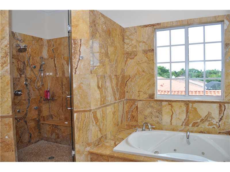 Fabulous 2007 waterfront home in prestigious, gated Gables by The Sea on cul-de-sac block. Grand double door entrance to vaulted foyer & view of water. Marble floors, impact glass & volume ceilings throughout. Gourmet granite & wood-eat-in kitchen 1 bed/1 bath downstairs. Heated pool and spa. New California closets, new upgrade baths and top appliances in the kitchen.