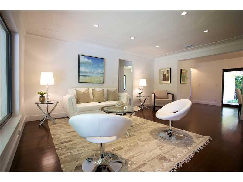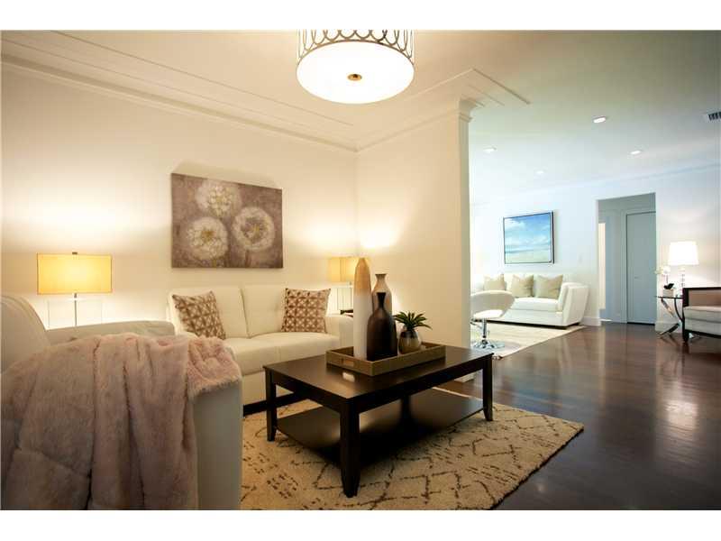 Meticulous 2014 custom renovation. This turn-key home features 3 spacious bedrooms, 2.5 baths w/designer fixtures & finishes. Light, bright open floor plan, solid hardwood floors throughout except rectified porcelain in baths. Entry foyer, formal livin g & dining rooms, family room, new custom kitchen w/island, solid wood cabinetry, quartz counter tops, stainless steel professional series appliances & wine cooler. All new baths w/DuraVit fixtures. Master suite 700+ sq. ft., Room for pool.