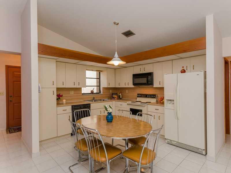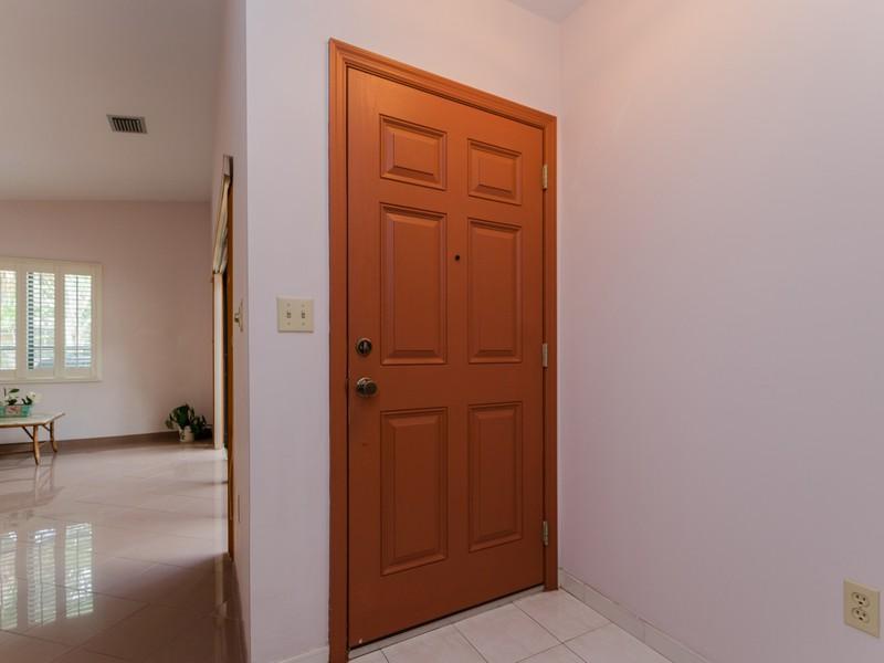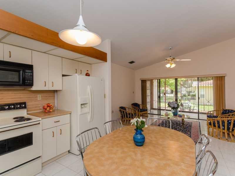 Classic 1980's home with great curb appeal and private entry courtyard set on a quiet, low traffic, tree lined street. Nicely distributed floor plan, open kitchen, large living room, family room, split plan bedrooms, with plenty of natural light. Large ma ster offers a generous size walk --in-closet. Sliding doors open to private porch. Featuring neutral tiles, vaulted ceilings, 1 car garage and accordion shutters. Meticulously maintained by original owner, it's a beautiful home in a quiet neighborhood.