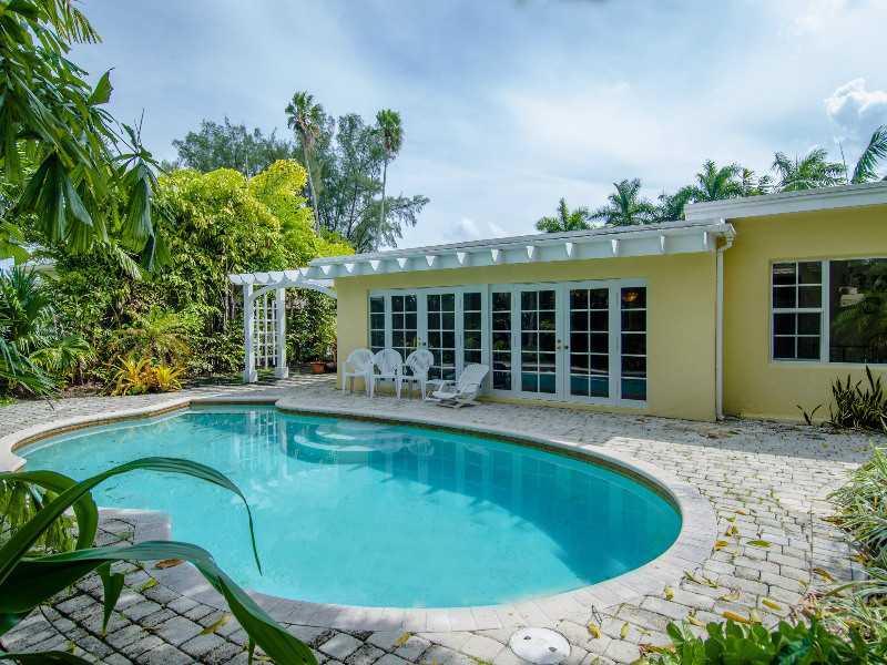 Mid Century Modern in a peaceful & idyllic setting. Overlooks the beautiful Normandy Shores Golf Course. Breakfast Rm, Florida Rm and Master Bdrm all face the lush & very private pool area. 2BD/3BA+Guest Rm. Large open living area with modern fireplace. I mpact windows & doors. Beautifully maintained. Move-in condition. Property is larger than tax roll. The location is premium. Guard gated Island close to North Beach Restaurants, shops, houses of worship & beaches. Nearby are 6 tennis courts for residents.