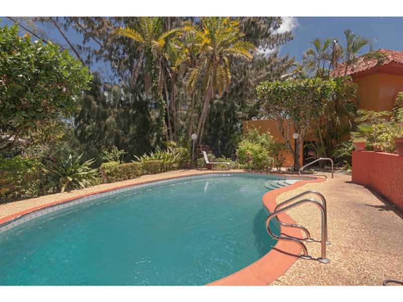 Step up to custom-sophisticated-secluded waterfront estate, uniquely designed with multi-levels inside & out. Step down to living rm overlooking magnificent 1/3+acre lush gardens & pool on canal. Formal dining room & den/wine cellar for entertaining. Step up to master suite w/private office-huge dressng area-bathrm w/tub+shower. Step out to private terrace & enjoy serenity of this tropical paradise. Step down to the children's wing: 3/2+fam rm leadng to pool w/outside shower.Must see-cannot be duplicated.
