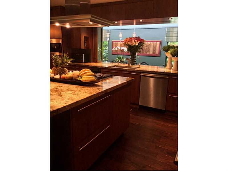 Located on Nautilus Drive, this home is on a level of its own. Unique features include a wall enclosed front garden with pool and patio. As you enter the home there is a large glass foyer, open entertaining rooms all with large glass windows. The large di ning room has plenty of room for large family dinners and entertaining. A handsome kitchen includes walnut cabinets, marble counters tops, stainless steel appliances including a full size SS freezer/refrigerator and massive storage.