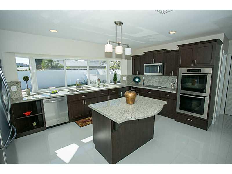 Completely renovated 3/3bath home in Ft. Lauderdale. Custom wood kitchen cabinets. Granite counter tops & stainless steel appliances. Baths have high-end vanities w/granite & quartz counter tops & glass enclosed showers. White-glass porcelain & laminate w ood flooring. Impact resistant glass windows. Large study/library/den area. Professionally designed landscape & new roof. Laundry room. Paved driveway & patio. Lap pool, redone w/glass tiles, Jacuzzi tub. Security. Walk to fine dining, shopping, & beach.