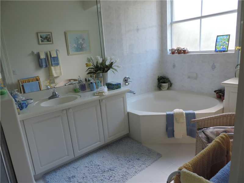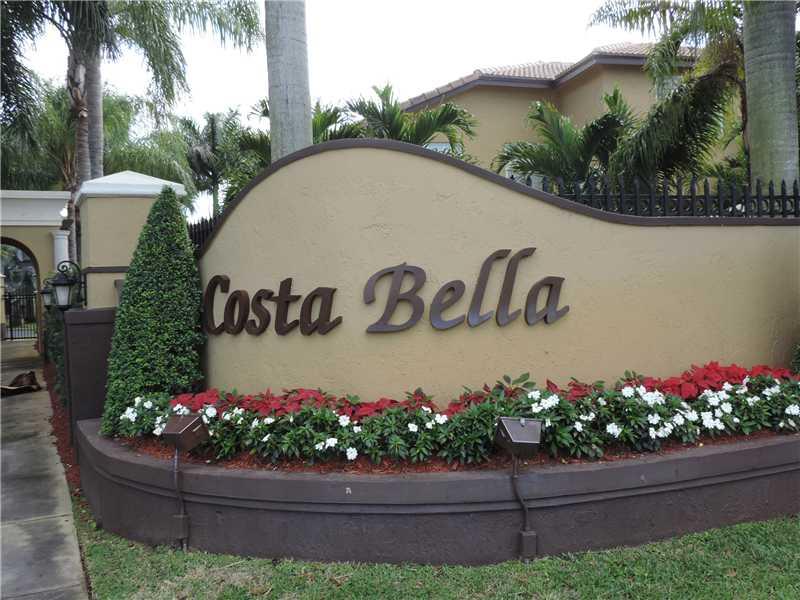 Fabulous coach home in prestigious community fo Costa Bella. Tile floor throughout downstairs. Formal living room, dining room, large eat in kitchen with granite counter tops over looking family room, large brick paver patio with nice landscaping, accordi on hurricane shutters. Four bedroom was open next to master bedroom (easy to convert back) could be used as an office, baby rooms; master bath with dual sink, bidet, roman tub and separate shower, walk-in closet with built in organizer.