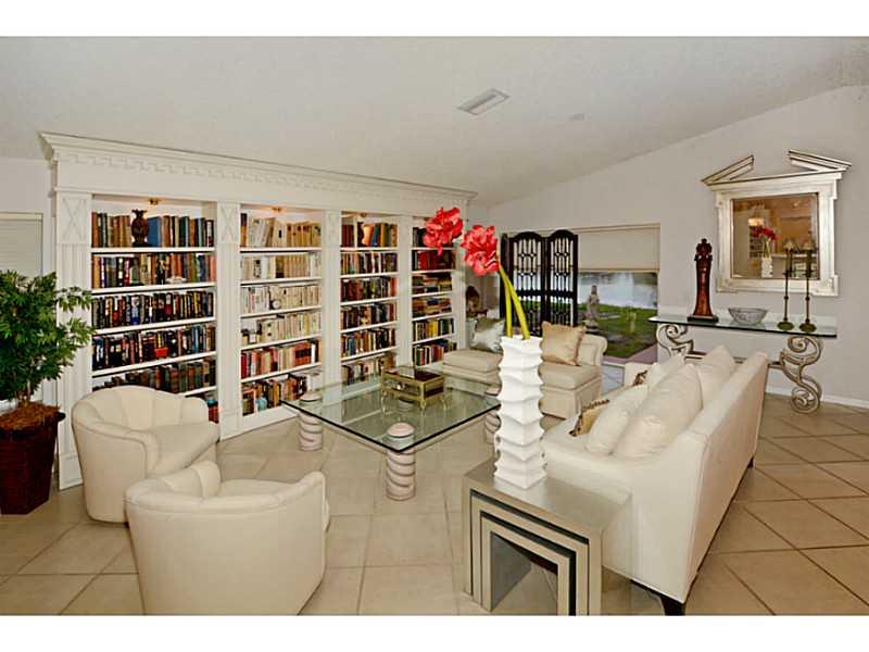 Fabulous 3/2 one story w/serene LAKE views, 2 car garage, note that the wall to 3rd bedroom is not up & room is open to living area (currently used as a formal dining room), tasteful designer touches (built-in desk, crown molding, paint etc), large neutra l tile on the diagonal, hurricane shutters & new garage door, a/c water heater appliances less than 3 years old, steps to community pool & play area, gated