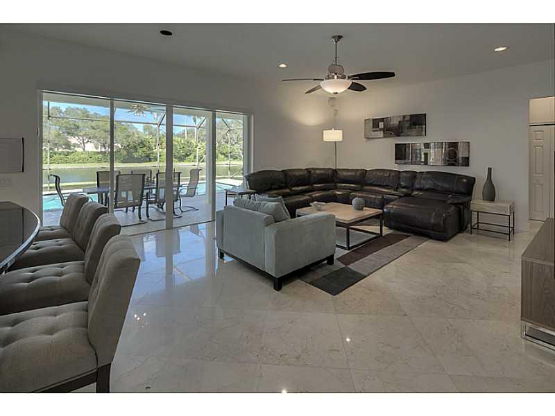 Bring your Family to this Beautiful 5 Bedroom / 4 Bathroom 2 Story Pool Home with 3 Car Garage. Vaulted ceilings & unique lighting fixtures add to the bright and airy ambiance. Stainless Steel Appliances & Granite Counter Tops add the perfect touch to this Kitchen. Elegance and comfort abound with Marble Flooring on the First Floor and carpet upstairs. Relax in your Screened-in Heated Pool Area with Hot Tub overlooking the canal waterway. Come see it now!