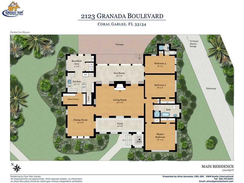Epitome of Old Spanish grandeur! Historic '23 George Fink home exudes character & charm. Main house 3/2 + detached 1/1 garage apt. Exquisite architectural details boasting coral stone frpl, wrought iron drs, arched windows, oak flrs, pristine kit w/garden view bkfst rm. Intimate, Chicago brick courtyard surrounded by lush foliage & impressive oak tree. Nearly 15,000 sq ft corner lot. Plenty room for pool & home expansion. Close proximity to Biltmore, Riviera & Granada Golf Course. Must see gem!