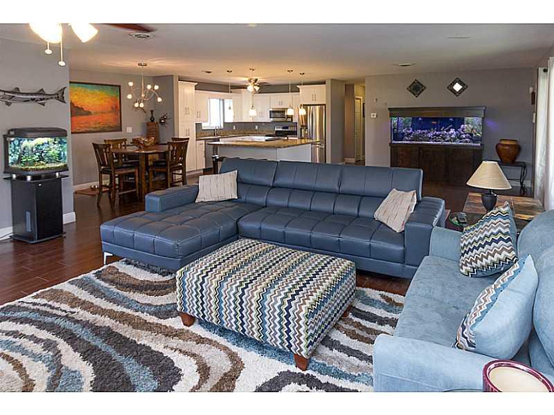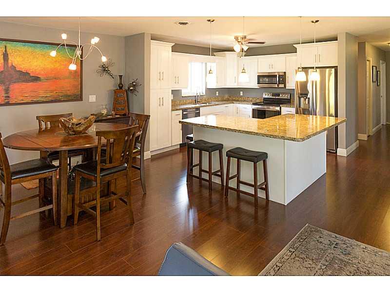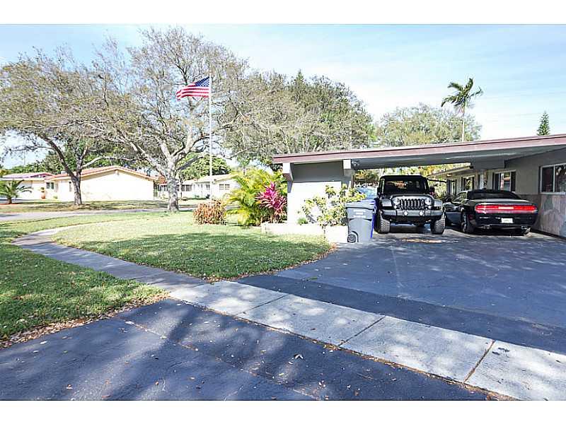 CHIC-ELEGANT-SPACIOUS! Featuring REAL OPEN LIVING AREA, laminated wood floors, IMPACT RESISTANT WINDOWS, laundry/utility rm, 2 car carport and circular driveway. The living-dining-kitchen area is totally open giving a very modern style to the house. The K ITCHEN REMODELED in white w/ STAINLESS STEEL APPLIANCES and Golden Sunset GRANITE TOPS. Two beautiful EUROPEAN STYLE REMODELED BATHROOMS with double sink in the master. YOU'LL FALL IN LOVE with the awesome wood deck, is the perfect place to unwind at home