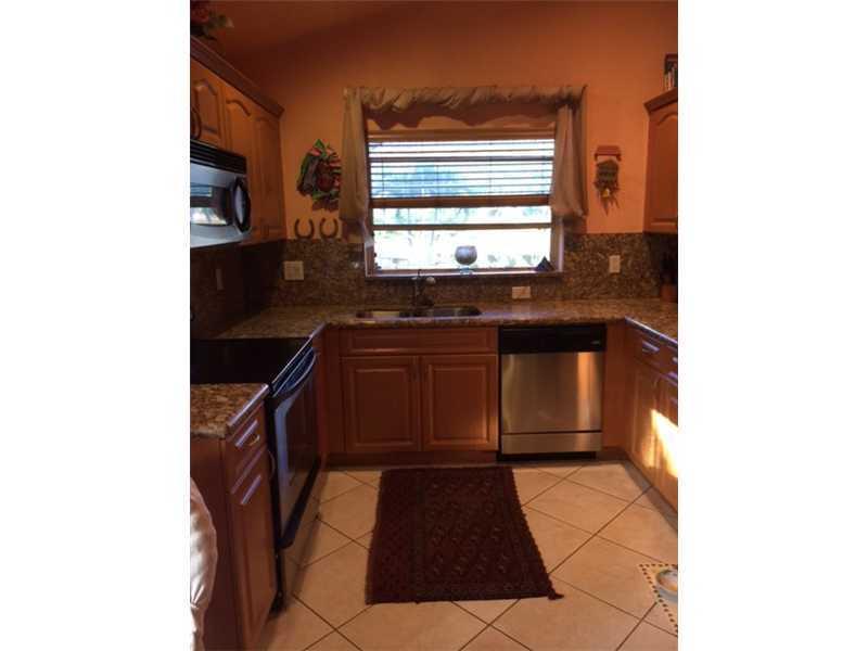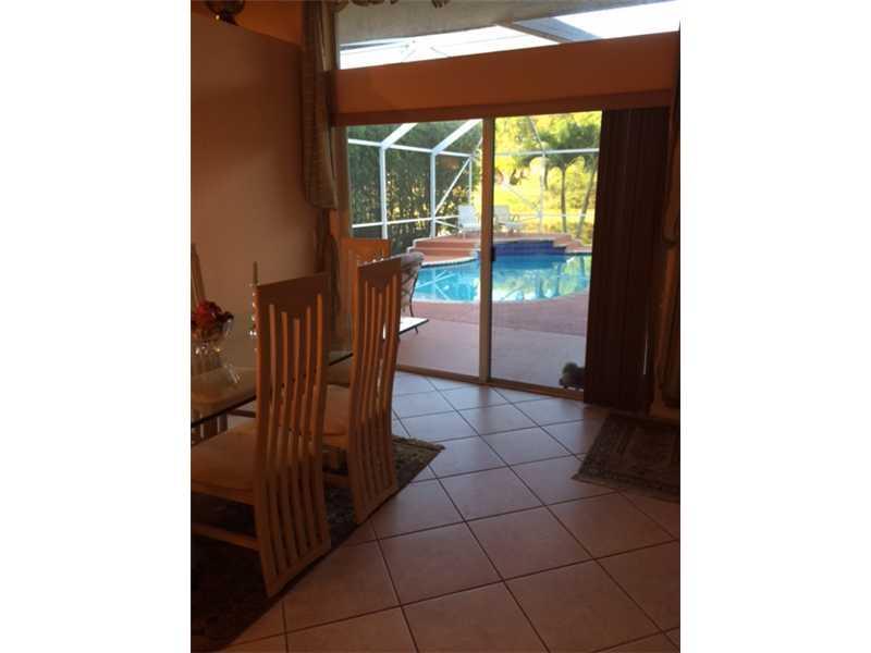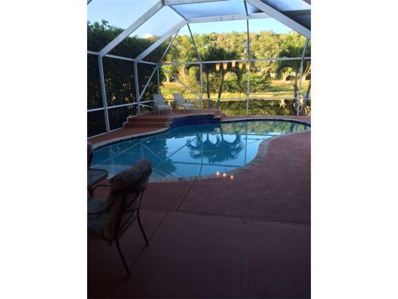 Gorgeous 3 bedroom, 2 bath home in Weston's sought after "THE FALLS" development!. This fine property is a single family home with pool! Spacious with vaulted ceilings and an open design. kitchen with granite counter tops with stainless steel appliances! Ceramic tile throughout. Huge backyard with screened pool and paved patio overlooking quiet and private serine lake. Long driveway you can fit 4 cars outside and 2 inside garage. "A" rated school.