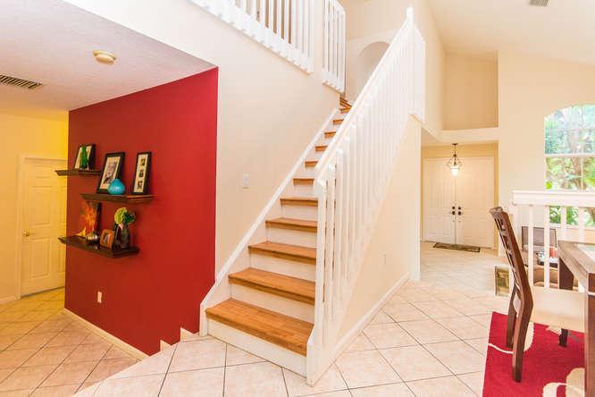 Beautiful Riviera Isles model home located on a quiet street.This home features tile floors, wood on the stairs, and high end laminate in the bedrooms. Freshly painted interior with high ceilings allowing lots natural light. Formal dining, living and a la rge spa in the master bath. Living area can be converted into a 4th room.Covered patio with plenty of room for entertaining. Community amenities: lake, pool, tennis, gym, clubhouse and guard gate. Home qualifies all financing and is in great condition.