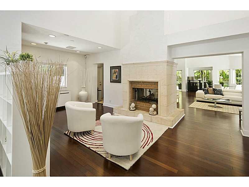 Stunning and open Pinecrest home with 5 bedrooms and 4 1/2 baths on a quiet street. Ideal for entertaining, this home has it all: vaulted ceilings, huge windows and sliding doors with sunlight pouring in, remodeled kitchen, new bathrooms, Brazilian Oak w ood floors, a two-way fireplace, a pool, and a huge covered patio. Also features a separate attached in-laws/guest entrance with 2 bedrooms, a bathroom, and a den! Outside is beautifully landscaped, with many fruit trees and over 50 incredible palm trees!