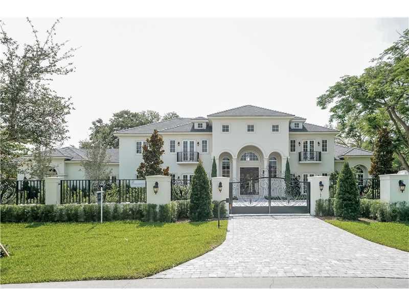 "Chateau Marseille" is a French influenced, newly constructed estate-sized home on a builder's acre in much sought-after North Pinecrest. Offering 7 BR (masters on each level), 8 full BA + 2 half BA, office, theatre/media room, roofed summer kitchen/enter tainment area, 3-car garage + motor court, 2 wood-burning fireplaces, elevator, 1100-bottle wine cellar, 6-station Smart Home system, concrete shake roofing system & a climactic, sun-drenched pool with swim-up bar + jets. S.F. per plans.