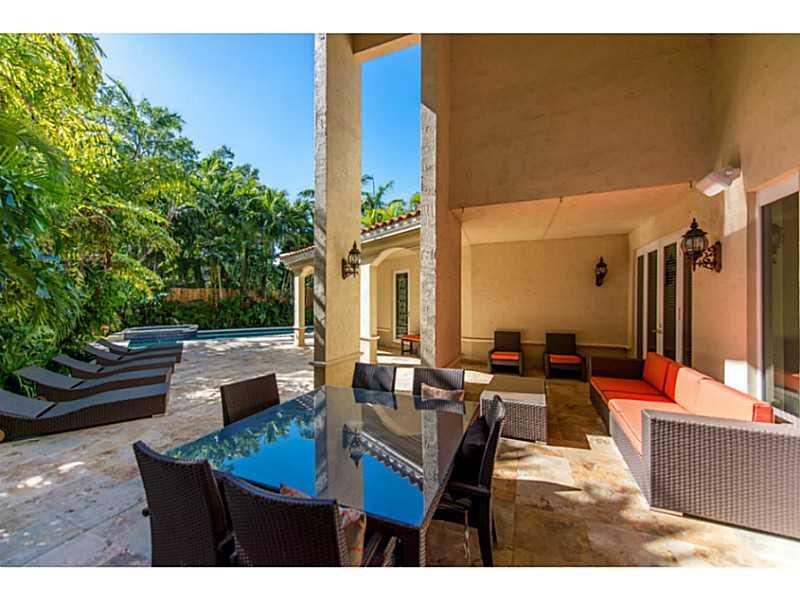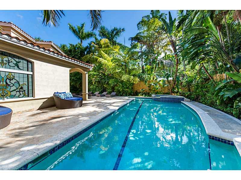 Elegant European style gated villa on oversized lot in South Coconut Grove. Enter into a grand foyer with dramatic staircase & double height ceilings. Light filled living spaces with the finest finishes throughout including Brazilian hardwood & marble flo ors, mahogany doors and impact glass. Expansive main floor master suite & 3 upstairs bedrooms w/ en suite baths. Downstairs staff quarters. French doors open onto covered terraces overlooking 40' heated lap pool surrounded by lush tropical garden.