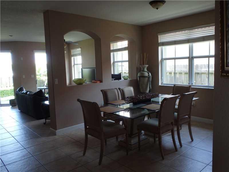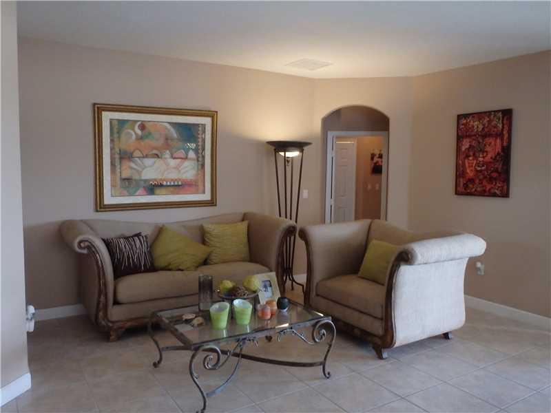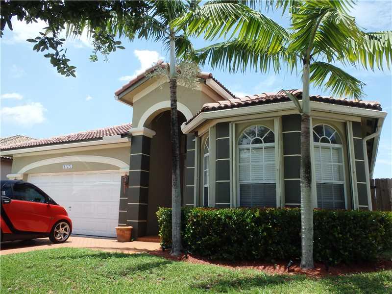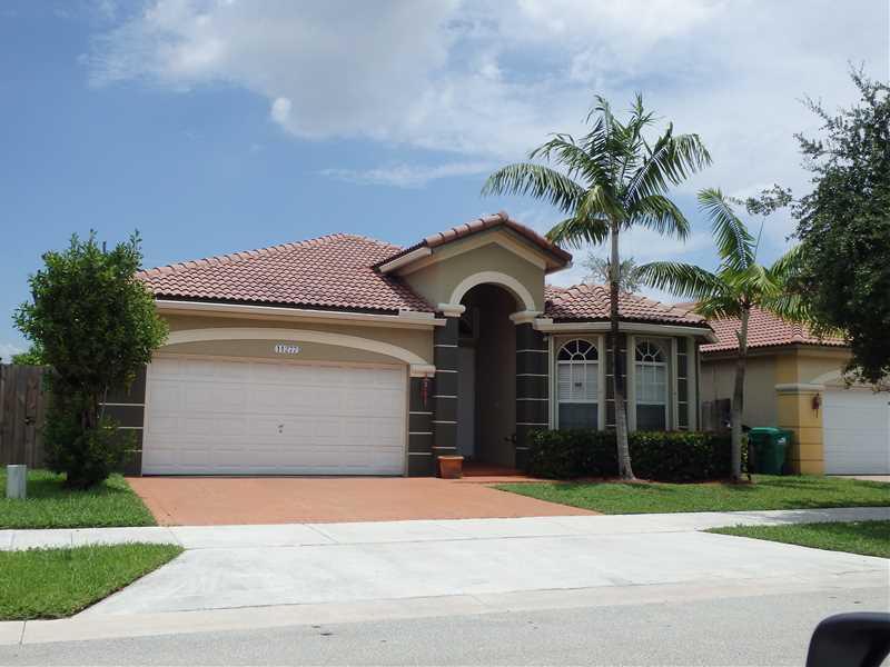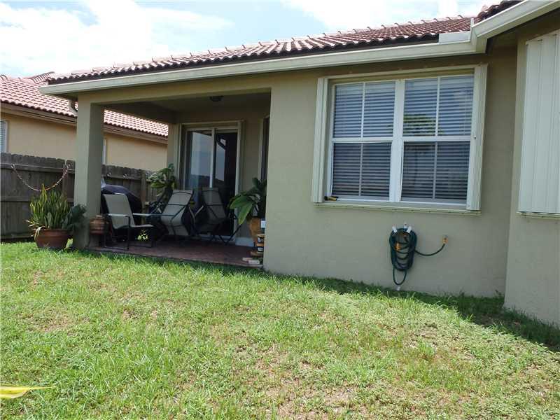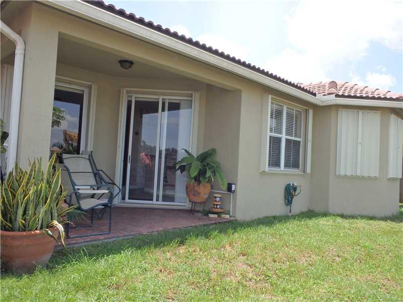 BEAUTIFUL ONE STORY HOME IN EXCELLENT CONDITIONS 4 BEDROOMS, 3 BATHS WITH VERY NICE OPEN LAYOUT, FOYER ENTRANCE LEADS TO LARGE OPEN SPACES OF LIVING, DINNING & FAMILY ROOM. NICE KITCHEN WITH GRANITE COUNTER TOPS AND ADJACENT BREAKFAST AREA. NICE BACK YARD WITH NO NEIGHBOURGS AT THE BACK, THE COMMUNITY IS BUILDING A PARK! TILED FLOORS THROUGHOUT. HURRICANE ACCORDION SHUTTERS. CLUBHOUSE, POOL, GYM TENNIS & BASKETBALL COURT. NEAR MAJOR HWYS, SHOPPING CENTERS AND RATED "A" SCHOOLS.