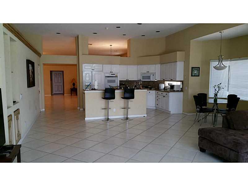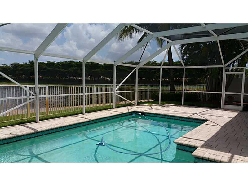 Beautiful 3 bedroom 3 bathroom house in the desire neighborhood of Bay Pointe in Weston Hills. Spacious kitchen with granite counter tops, double ovens, separate breakfast area with a views of the pool and lake. Open floor Plan with high ceilings througho ut main living areas. Custom build walk-in closets. Screen in pool with long lake views.