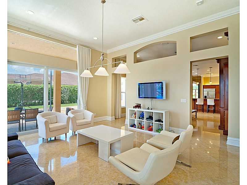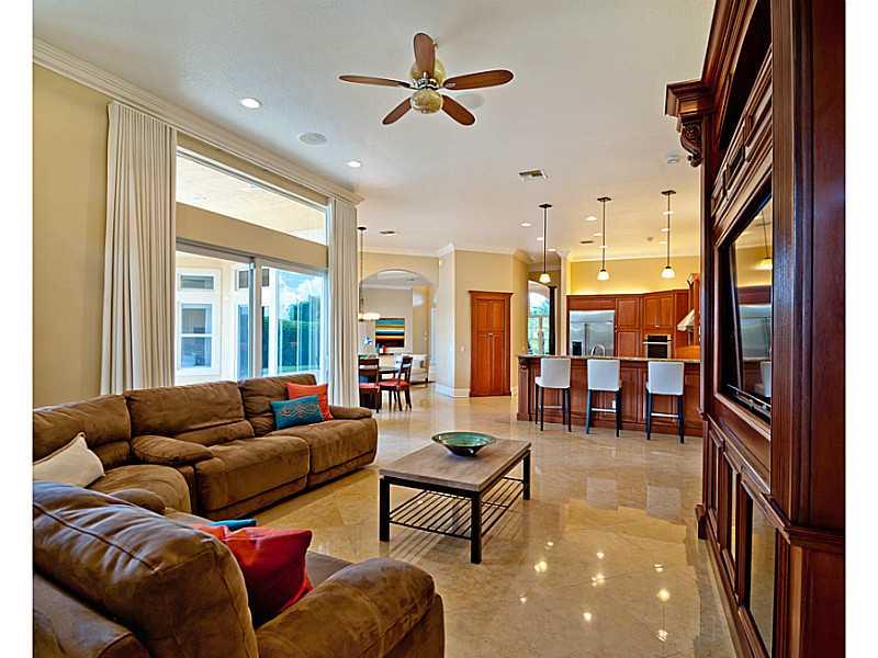Largest 1story model available. Great TripleSplit floorplan 6/4.5+office/Nursery&addl Game room.Lushly landscaped.A blend of well-appointed finishes thru-out,large gourmet kitchen w/granite counters & SS appl. Jerusalem marble & hardwood floors. Formal di ning & living areas,24ft ceilings,custom built-ins&window treatments,all baths luxuriously upgraded. Resort style w/custom oversized lagoon pool.Outdoor kitchen,childs play area on a Premium Builders Acre Lot.