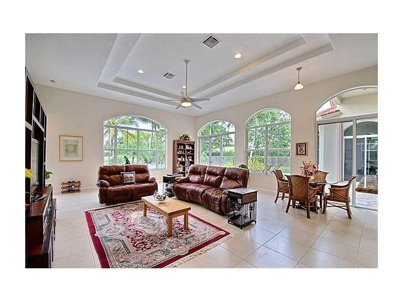 Fabulous family home featuring sparkling water view. This lovely home has been immaculately maintained. Spacious, open floor plan with high ceilings, gourmet kitchen, and large master suite are just some of the features your buyers will love. Beautiful , private view of lake and pool with lush landscaping. Bright home with lots of windows and beautifully set back. 24 Hr manned security! This home is ready for your fussiest buyers. Easy to show.