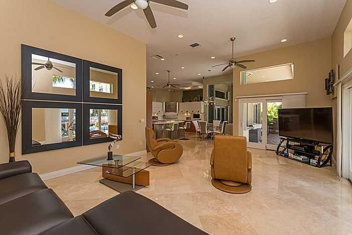 Beautiful renovated one story modern house on oversized lot with 110 FT on waterfront. Dock plus 15,000 pound boat lift. Ocean access and no fixed bridges to Haulover Inet. 12 FT ceilings in main areas. Spacious master suite overlooking water, walk-in cl osets, and hardwood floors. Large master bathroom with separate spa and shower and double marble vanities. Marble floors throughout house except bedrooms. Spacious modern kitchen opens to family room and overlooks roofed patio area, pool spa and water.