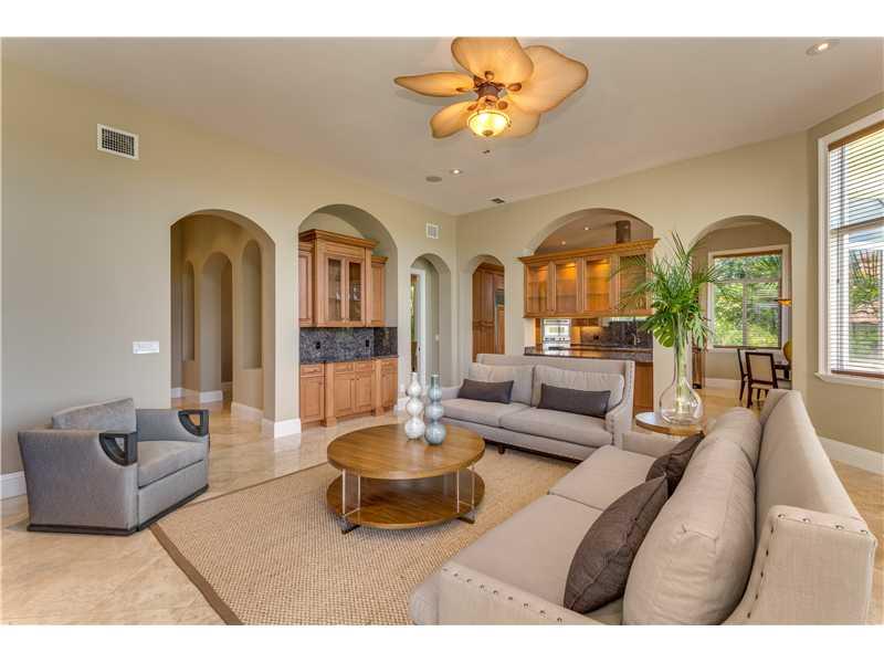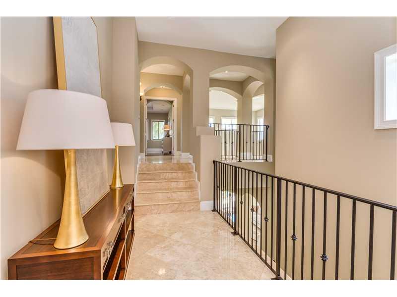 Exquisite and elegant! Updated transitional style. High volume ceiling throughout, gleaming marble and hardwood floor. Gracious formal living with fireplace, beautiful dining room, Gourmet chef's kitchen. Lavish master with luxurious bath, all en-suite be drooms with balconies. Stunning pool patio with gazebo. Impact windows, generator, private deed boat slip. Shows like a dream. A must see! Situated in guard gated Hammock Oaks exclusive community.