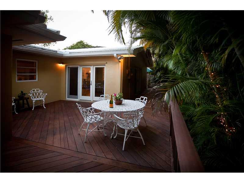 Large 3/3 w/garage & broad circular driveway surrounds a specimen gumbo-limbo tree & makes a charming first impression. Inside discover bright, open spaces lovingly maintained. Expansive living room opens onto a family-friend lanai. Beautiful new wrap-aro und deck of Brazilian Ipe is perfectly suited for grilling & entertaining. Stylishly updated black & white eat-in kitchen. New SS appliances plus sleek Kohler chef's sink. Formal dining. Master bed his & hers baths. Expresso wood floors in bedrooms.