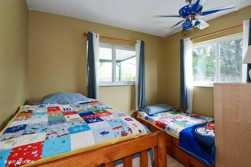 Charming home with 3 beds/2 baths, & bay window in front. Tucked away in low traffic area, at the end of dead end street. Galley kitchen with wood cabinets & corian counter. Spacious yard with huge shed-has electric, water, utility sink, combination washe r/dryer with steam dry. Driveway in front & carport on side-use for parking or a covered patio. A/C, impact windows, water heater less than 2 yr's old. Roof from 2006. All tile floors. Alarm. Drain field redone in 2006.Very well kept home. Come see it!