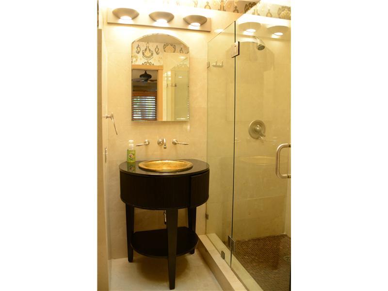 Beautiful three bedroom two bath designer home with family/media room. Crown molding & marble floors with mosaics insets throughout. Updated gourmet kitchen w/dbl ovens. Recessed lighting. Home sound system with recessed speakers individual controls in e ach room & outside. Spacious covered patios in front & back yards. Professionally designed landscaping & exterior lighting. New Impact windows with Interior wooden shutter window treatments throughout. Private Pool deck & dock has nice views of waterway