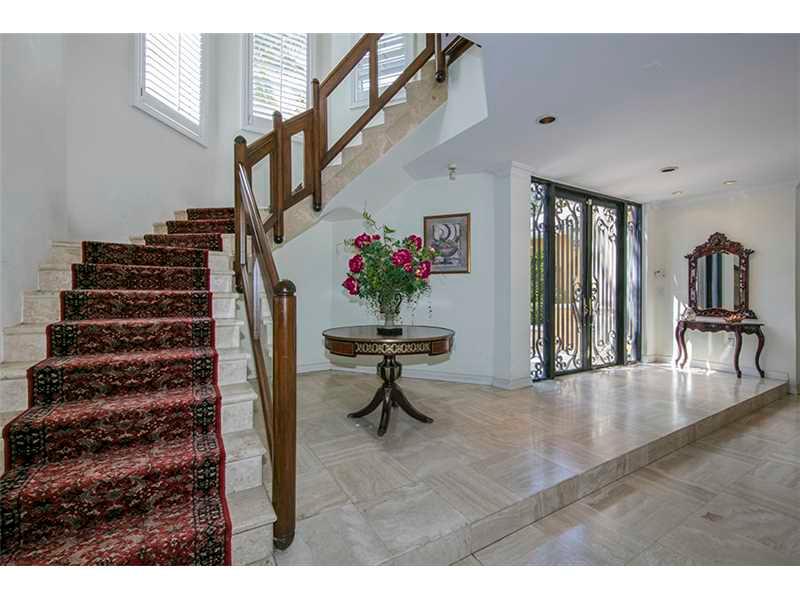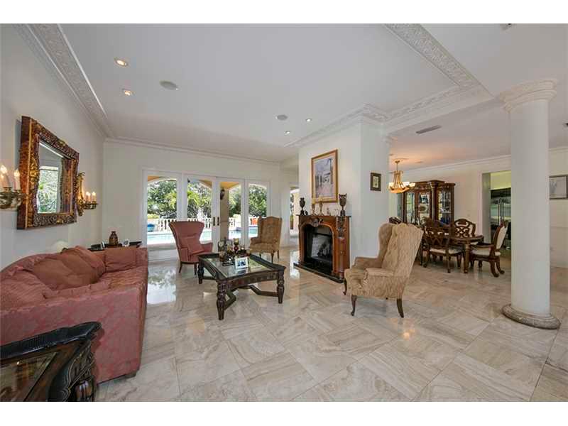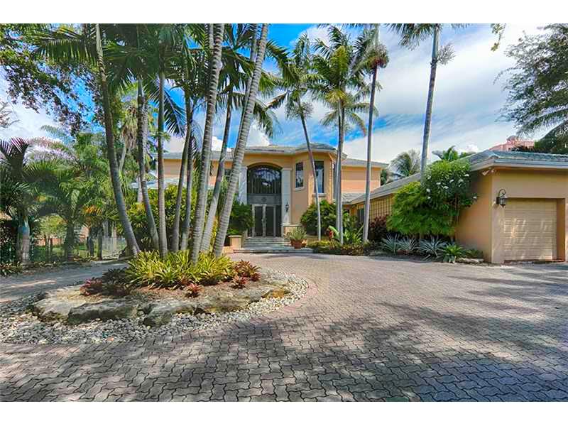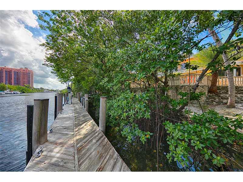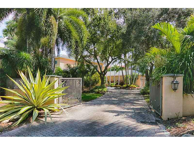 Best value for updating, great for large yacht, no bridges to Bay. Wide Gables Waterway, 22,730 sf lot, approx. 80 ft dock. Very private home not visible from street, at end of gated driveway.Room to add value on desirable waterway and oversized lot. Great ceiling heights, floor plan,ready for updates. Open lay out with Living/Dining Great Room open to covered terrace. Kitchen and breakfast room, open to family/bar.Functional floor plan with downstairs master suite, plus office/library, 1/1 staff.4 upstairs bedroom suites. Sq Ft as per tax roll.