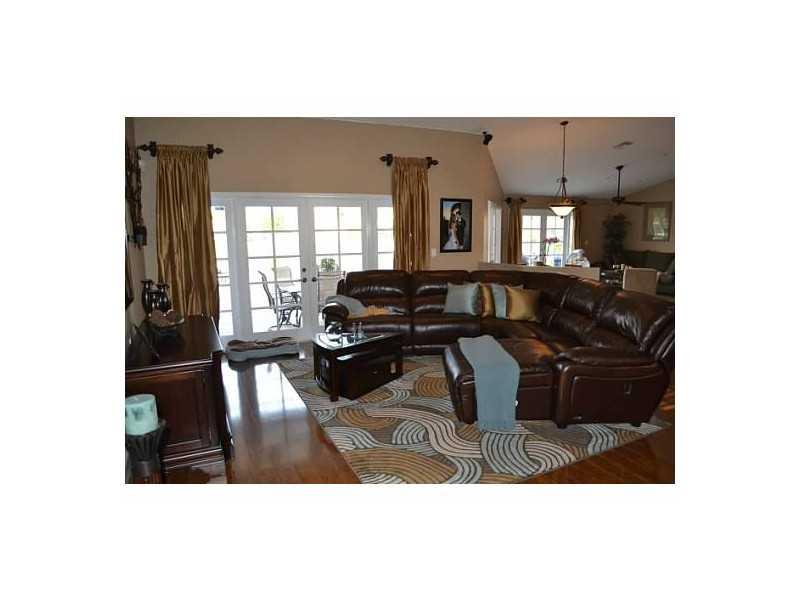 Don't miss this one! Relax and enjoy beautiful sunsets in this 5 bedroom 3 bath pool home. French doors through out ground floor facing a beautiful lake view. Master and 2 bedrooms on ground floor, 2 bedrooms on 2nd floor. Beautiful wood flooring firs t floor, with Berber carpet 2nd floor. Home was renovated to create and open floor plan, wired for surround sound and security cameras. Custom blinds on French doors. Alarmed with glass breaks and motion sensors through out the home.