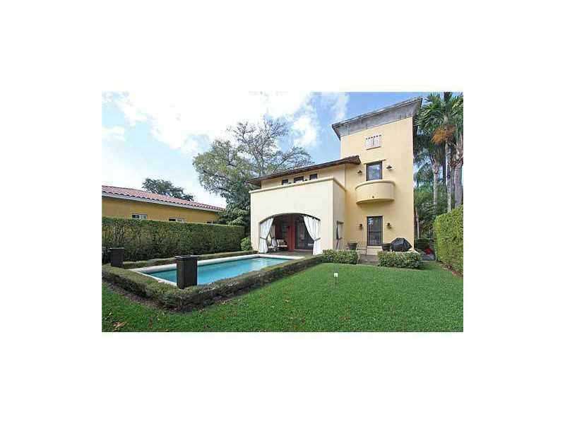 Exquisite Jorge Hernandez home in the prestigious Golden Triangle. This 3,070 sf home is finished w/the finest details including 12' ceilings downstairs, crown moldings & hardwood floors. 3 BR up stairs + office & 3 full baths. Master suite has 14' ceilin gs, 2 walk-in closets & an oversized balcony w/ lush views. This light-filled home is truly beautiful! The covered patio & pool area are accessed by French doors off family room, which is open to a lovely kitchen w/ snack bar area.