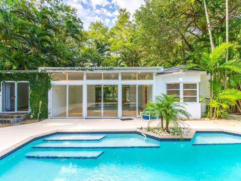 Located in desirable North Coconut Grove, this home sits at the end of a long driveway among gorgeous trees and grass lawns, behind a tall wall for complete privacy. The open floor plan allows views of the Lg pool and garden through the expansive glass do ors and windows. The vaulted ceilings bring an impression of grandeur to this midcentury-modern home. Pristine wood flrs throughout a very contemporary new kitchen 3 bds/2bths.+ 1bed/1bath guest house and an amazing 14,148sqft lot complement this home.