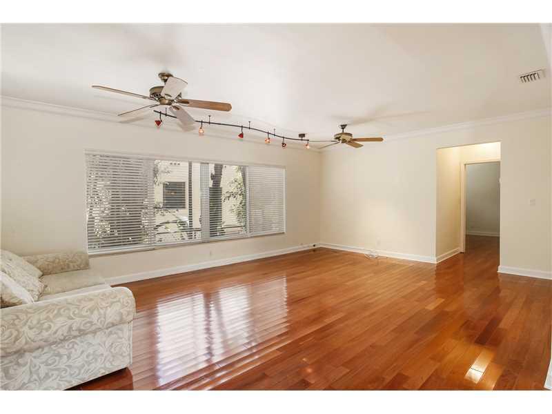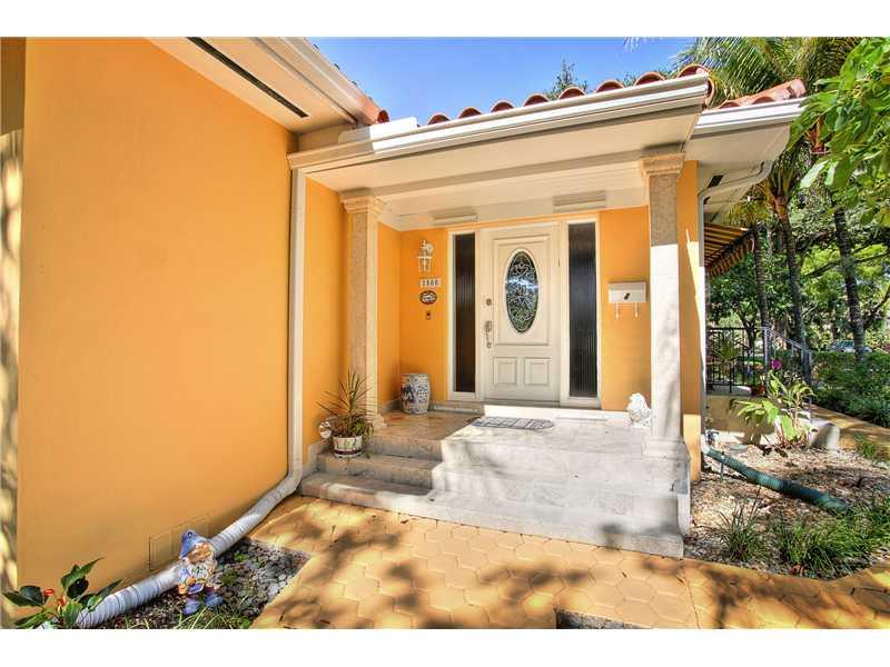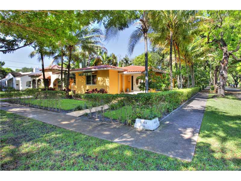Charming home, located on the corner of two beautiful, peaceful, tree-lined streets in Coral Gables. Bright & cheery open spaces flooded w natural light thru the impact windows & doors; wonderfully updated eat-in kitchen w double ovens & plenty of cabine t storage; spacious bedrooms each w large closet. Enjoy the outdoors on the charming back patio looking toward manicured lawn w automatic sprinkler system. Wood floors, laundry room & a one-car garage complete this delightful home.