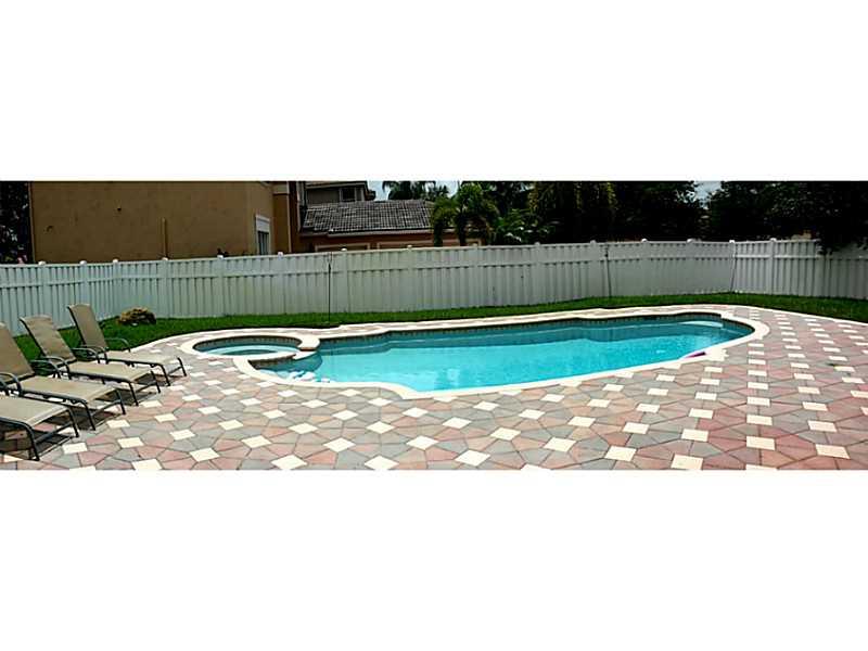 Corner lot one story 3 Bed/ 2.5 Bath home in prestigious Sunset Lakes (Monaco Cove). Open kitchen with beautiful cabinetry and tiled throughout. High ceilings with large open formal living room and dining room Home has an oversized lot with a new pool b uilt in 2008 & pavered patio. PVC fencing all around home, alarm system and in gated community. Great area with A+ schools.
