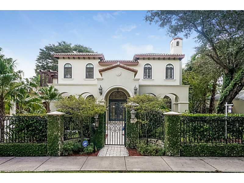 Majestic home on historic and prestigious Alhambra Circle. Built in 2006 featuring 6BR/6.5BA, elegant and quality high-end features coupled with soaring ceilings throughout. Spacious living areas, formal living and dining rooms, library, gourmet eat-in ki tchen, marble and wood floors throughout, and hurricane impact glass. Beautiful & covered patio area facing heated pool on a large exquisitely landscaped gated lot.