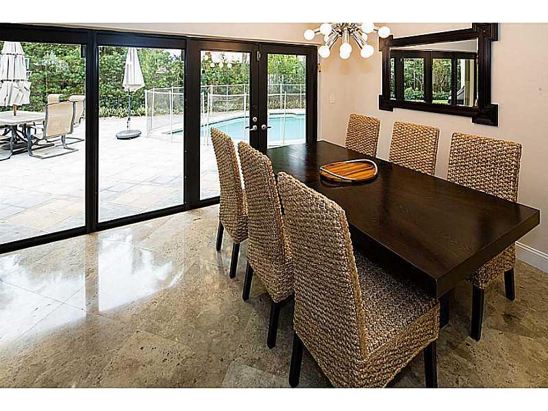 Stunning family home on majestically landscaped lot. Fabulous home features a gorgeous center courtyard, luxurious master suite, and an all new kitchen with ss appliances. Marble in all living areas, wood in all bedrooms. Windows in bedrooms and front of house are all impact and shutters on the rest. Imported lighting and plumbing fixtures , new A/Cs and water heaters and new A/C ducts. Tropical pool, indoor/outdoor bar, and air-conditioned storage unit. Chandelier in dining room and foyer excluded.