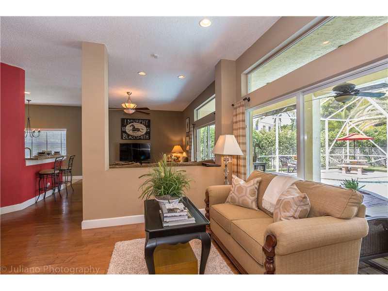 Gorgeous Laurel Ridge home with pool!!! This 3 bedroom plus den (no closet) is upgraded to the fullest to include: Real hard wood floors through out main living area and bedrooms, updated kitchen with 42 inch wood cabinets, stainless steal appliances, an d granite counters. Custom designed drapes and light fixtures. Pool patio is screened and pavered on a private oversized lot. This is a unique floor plan--very open and bright.