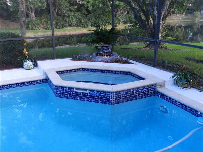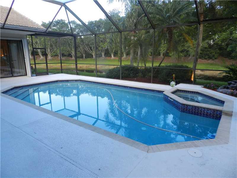 $2,500 BONUS TO BUYER'S AGENT!!! RUN to see this Move-In Ready Home, in Beautiful and Private Tequesta Neighborhood. 4 Bedroom (Split floor plan), 2.5 Bath, 2 Car Garage on Large Lot, Lake Front with Screened Pool and Hot Tub. Skylights in Family Room pro viding Natural Light. Spacious and Open Floor Plan. Updated Kitchen with Stainless Steel Appliances. Roof was replaced 7 years ago, A/C was replaced a couple years ago. Large 24" Tiles throughout Living Area. Gated Weston Community with "A" rated schools.