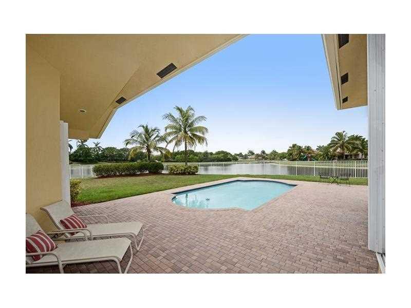 Large 16,800 sq ft cul-de-sac lot with wide lake views and sparkling blue pool makes entertaining easy! 5 BR, 3BA, home with 2 New AC's(2013), volume ceilings and accordions. This gated Weston community with "A" rated schools has large community clubhouse with 5 star resort like amenities including pools, water slides, miniature golf, basketball, soccer fields, mini snack bar, Tiki huts, playground and so much more! Spend the Summer, Holiday's and invite guest to your own resort like community club.