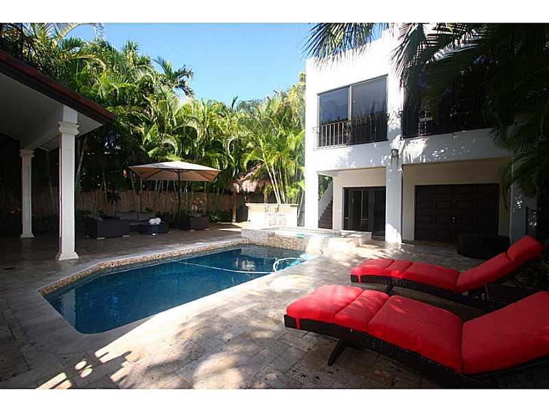 Back on the market! Built in 2005 with quality construction & great attention to detail, this spectacular North Gables home is sited on a beautifully landscaped & completely gated lot. 3/2.5 in the main house with ample living areas, lux master suite, mar ble/wood floors & high ceilings. The true 1/1 guesthouse is not only spacious & inviting, but totally independent. Beautiful salt water pool/hot tub & outdoor entertaining area with tiki hut & summer kitchen. Includes 17,500W portable gas generator.